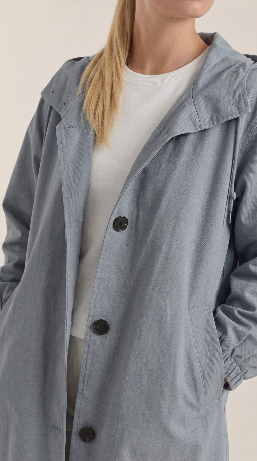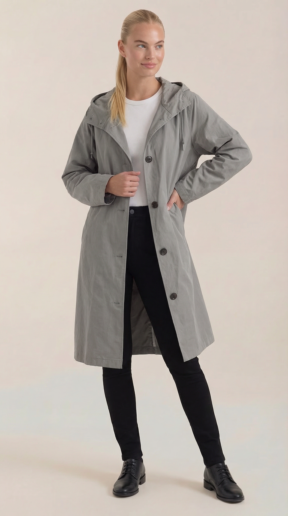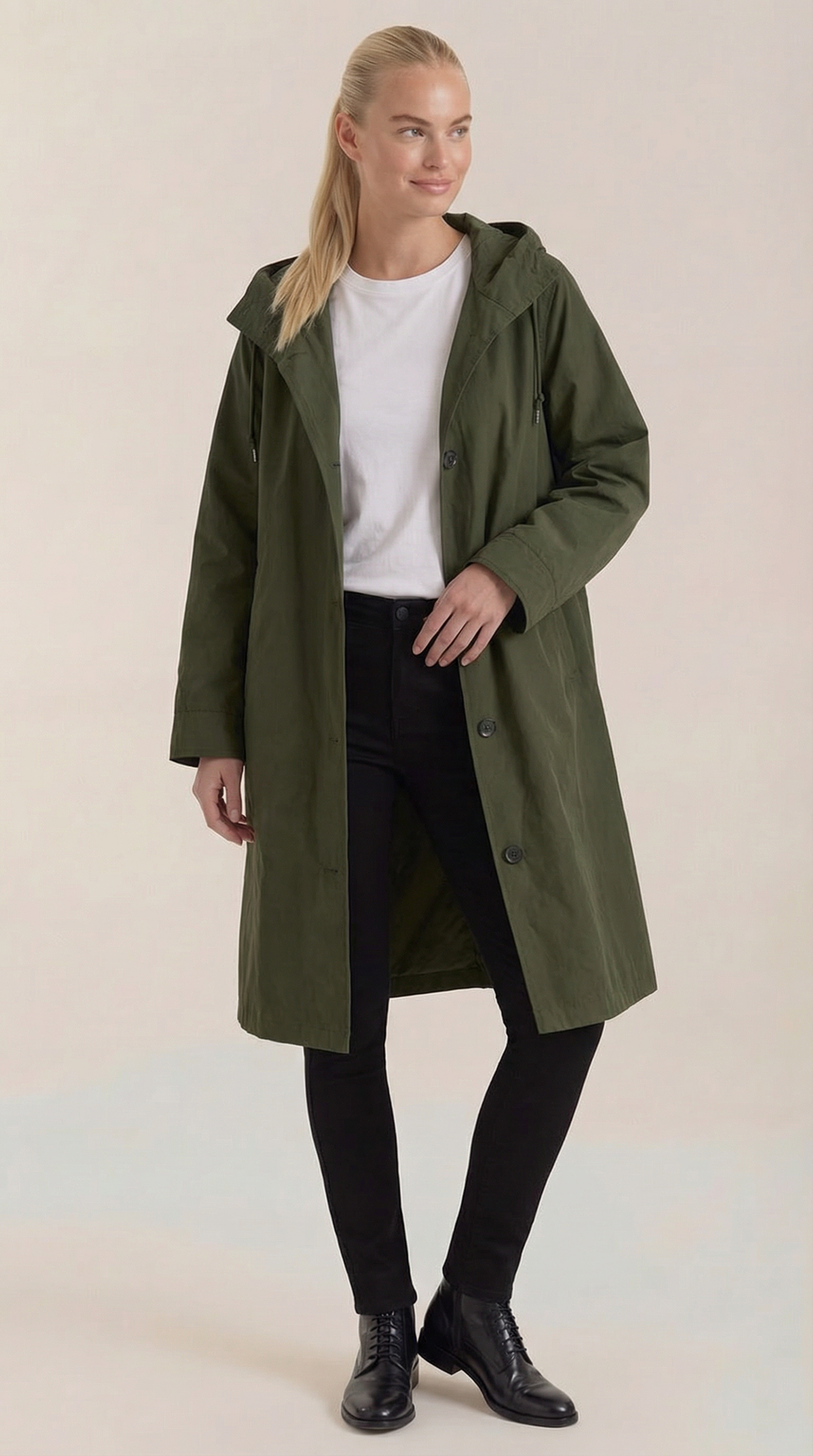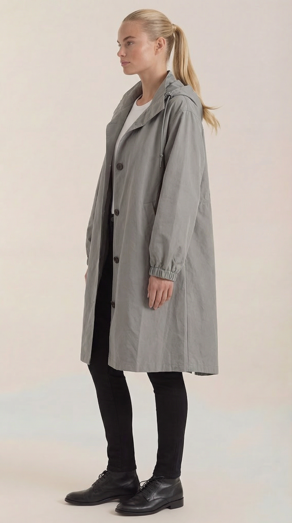 La chaqueta de lluvia Margie con capucha es tu compañera ideal para mañanas frescas y días lluviosos. Diseñada para mantenerte cómoda y con estilo, es perfecta para cualquier actividad, desde hacer recados hasta paseos relajados.