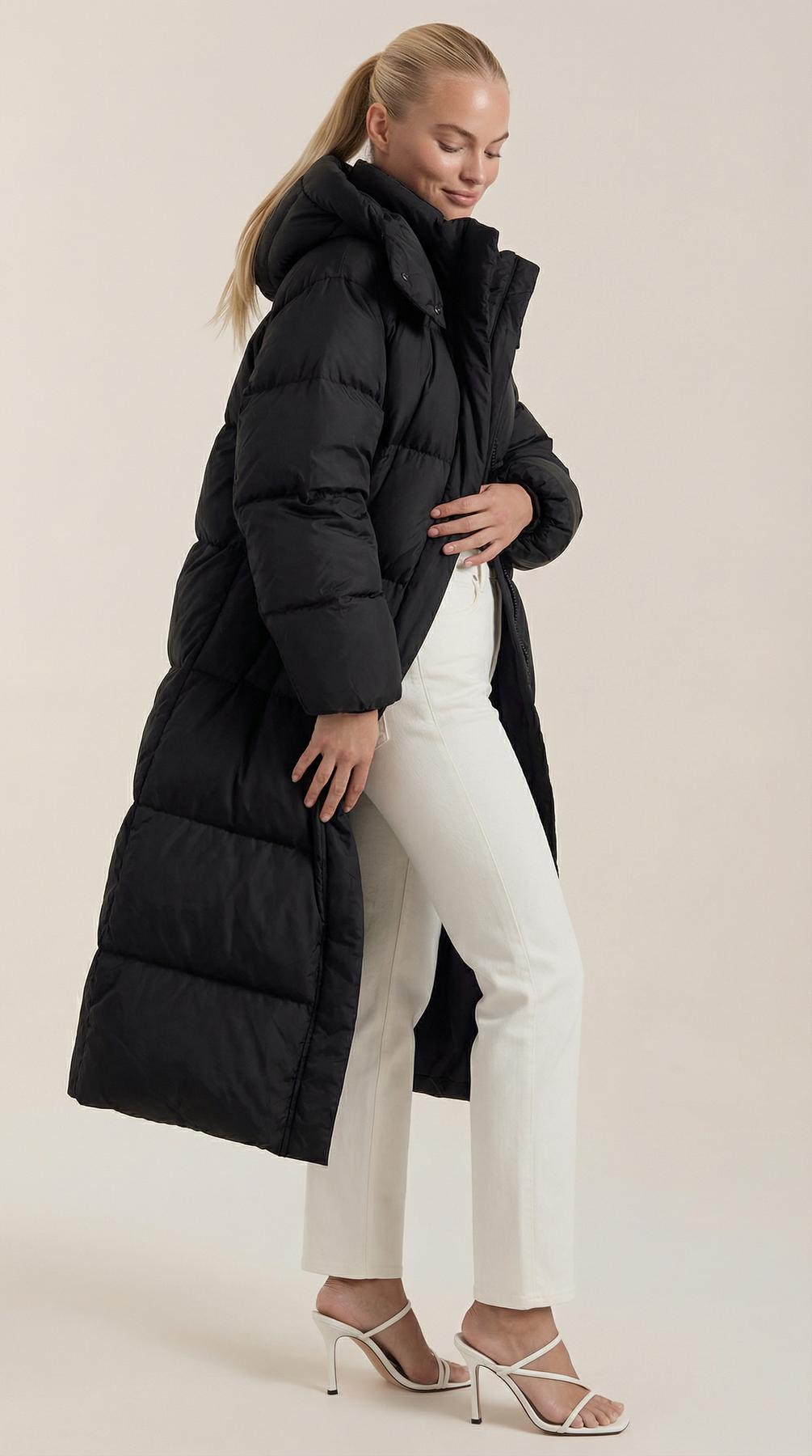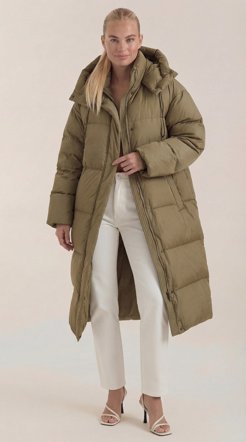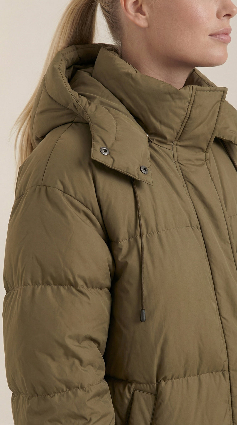 Abrigo Puffer Acolchado Nora es tu aliado perfecto para el invierno. Con su acogedor diseño acolchado y capucha oversize, este abrigo te garantiza calidez de pies a cabeza.