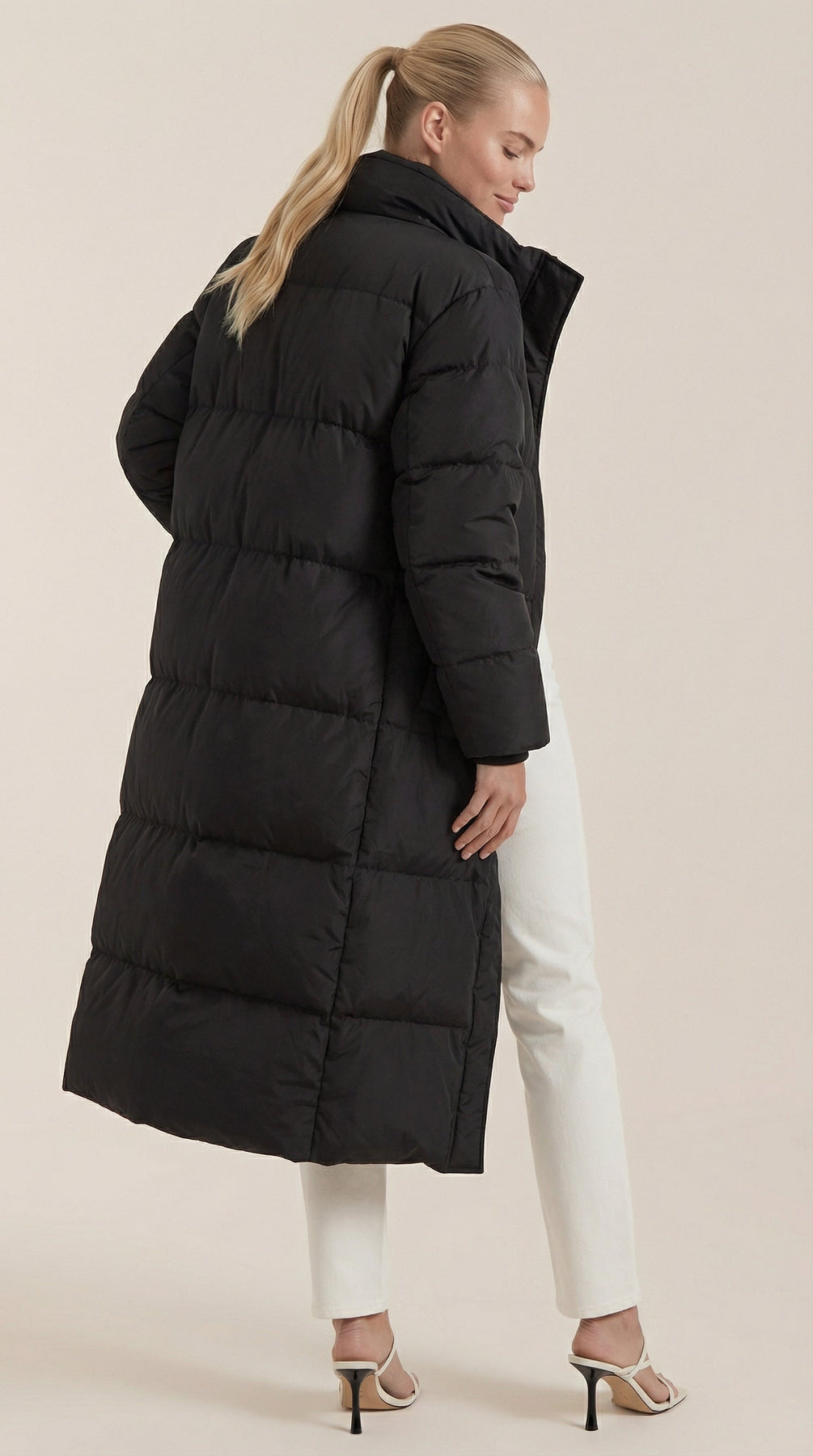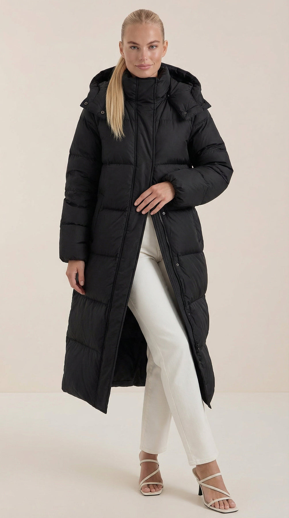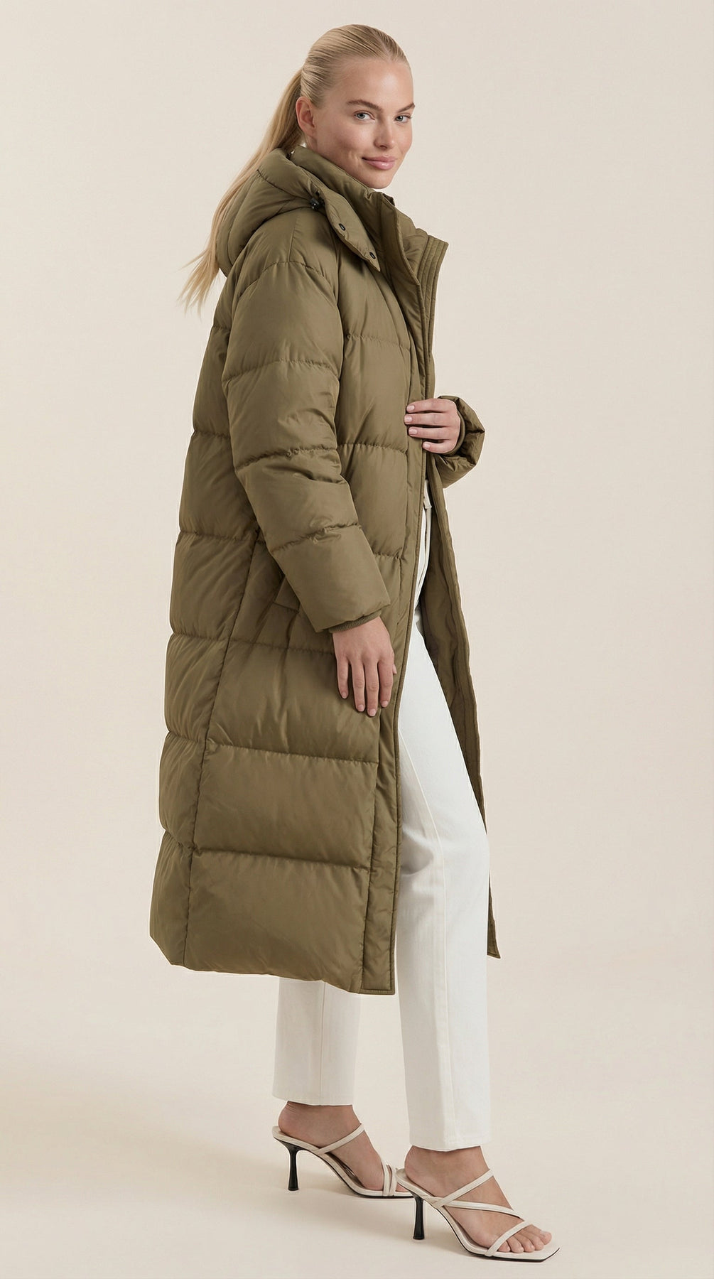 Abrigo Puffer Acolchado Nora es tu aliado perfecto para el invierno. Con su acogedor diseño acolchado y capucha oversize, este abrigo te garantiza calidez de pies a cabeza.