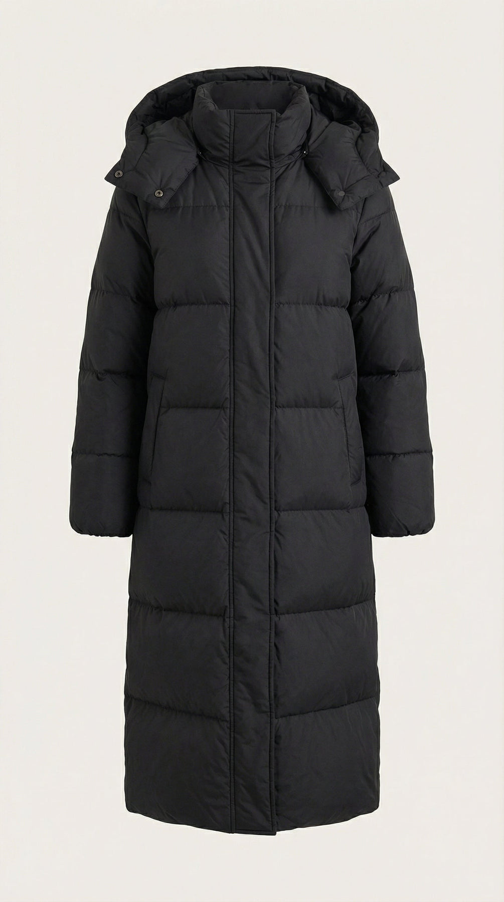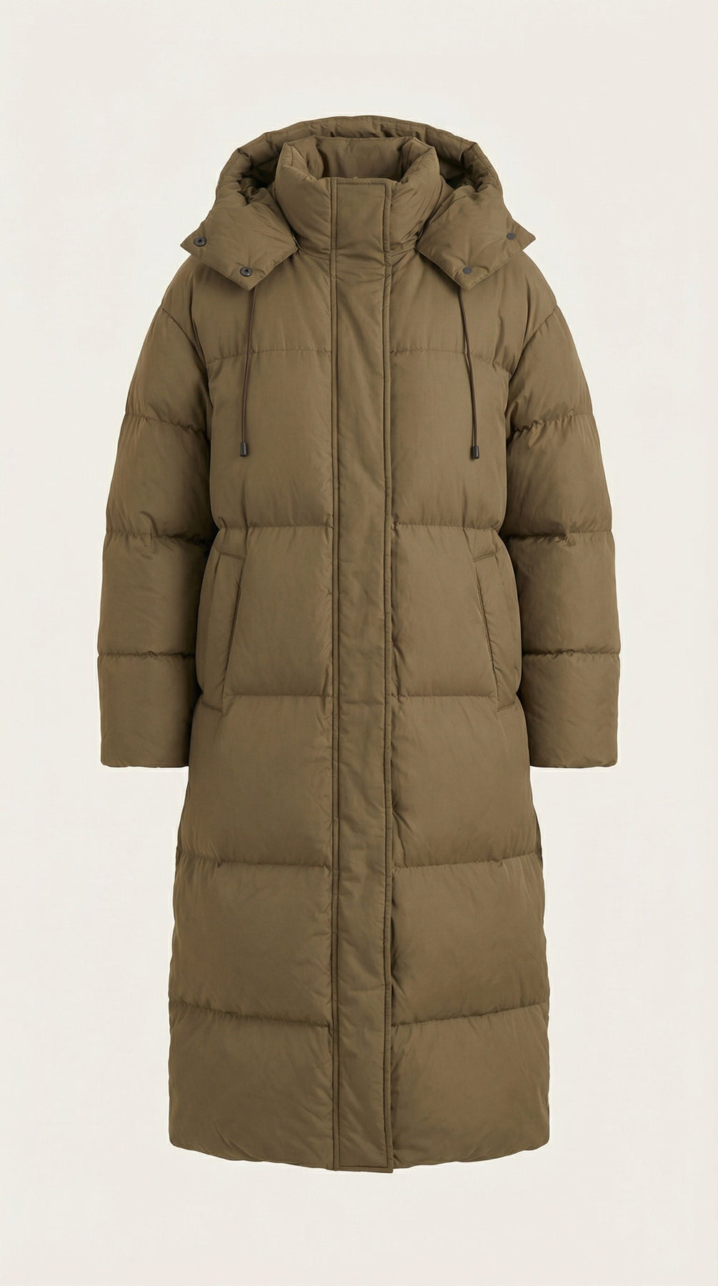 Disfruta de su longitud larga que ofrece calor y cobertura óptima, mientras que la capucha te protege del frío. Su diseño acolchado retiene el calor de manera efectiva, y los bolsillos funcionales mantienen tus esenciales siempre al alcance.