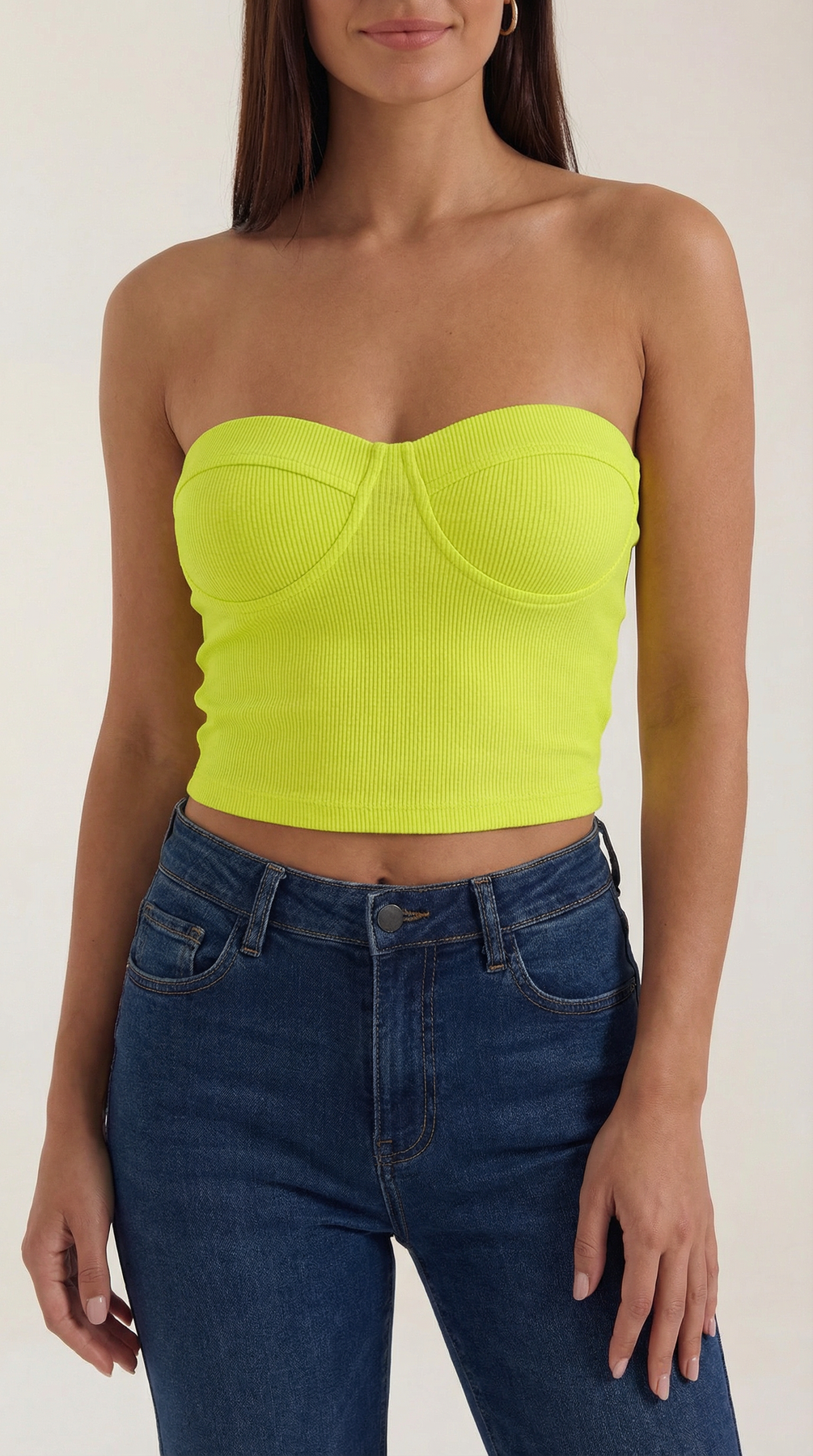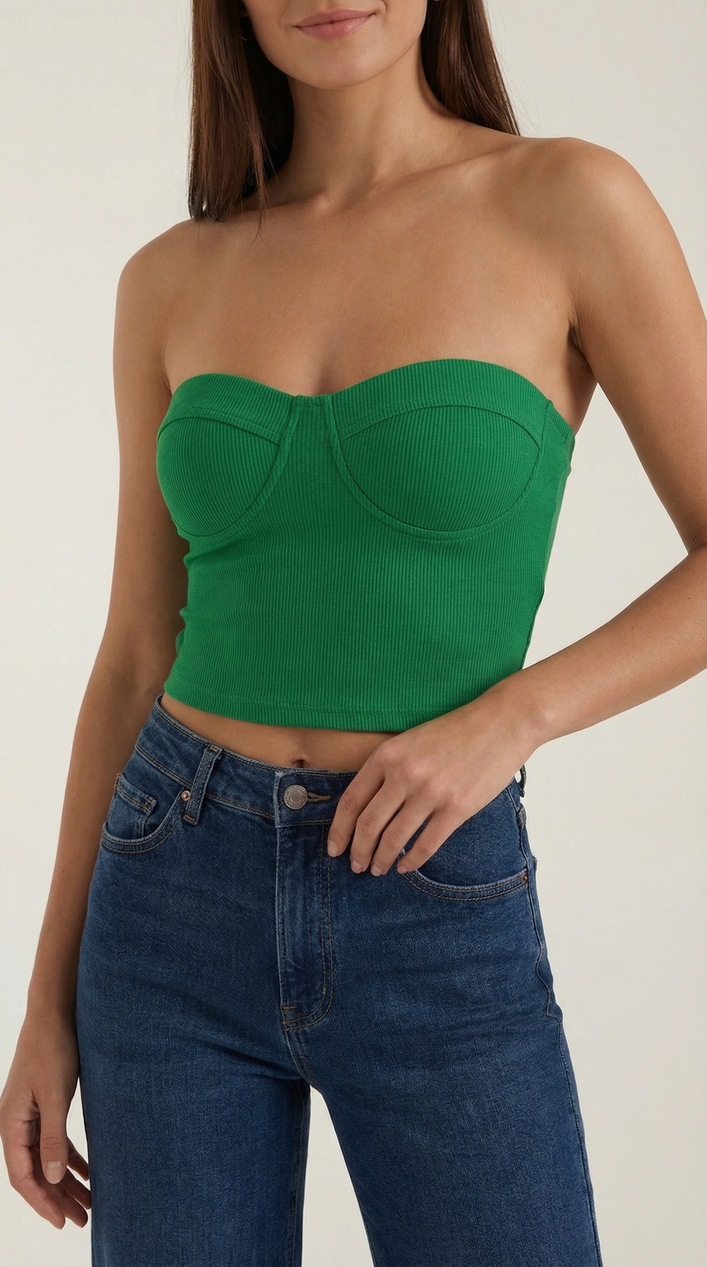Destaca con su escote en forma de corazón y costuras magistralmente ubicadas que crean la base perfecta. La silhouette sin tirantes resalta tus hombros, añadiendo un toque de elegancia a tu look.