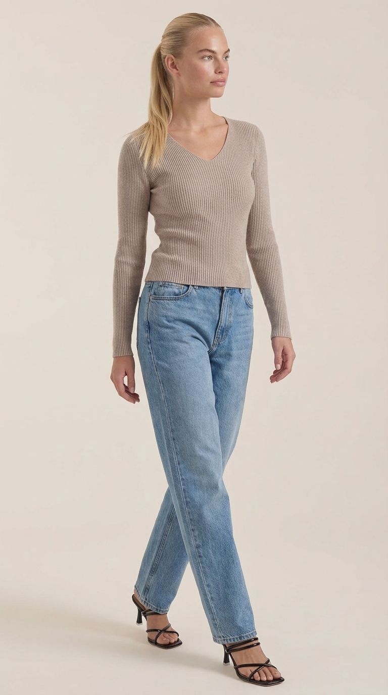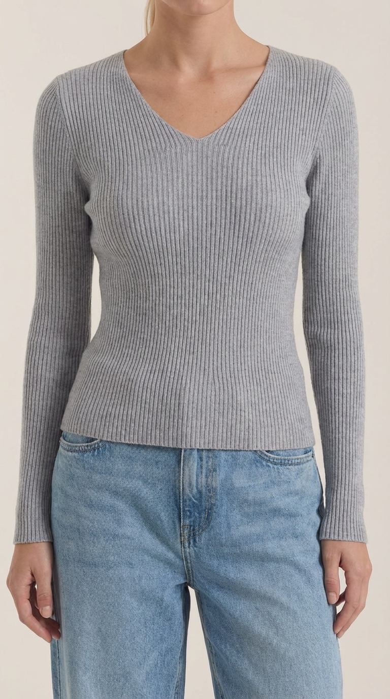 Con un favorecedor escote en V y una elegante textura de canalé, esta prenda es tu compañera perfecta para un estilo sin esfuerzo, todos los días.