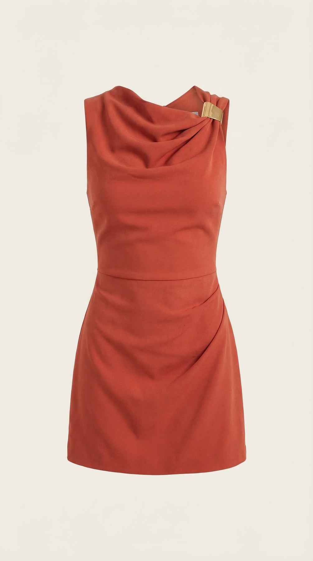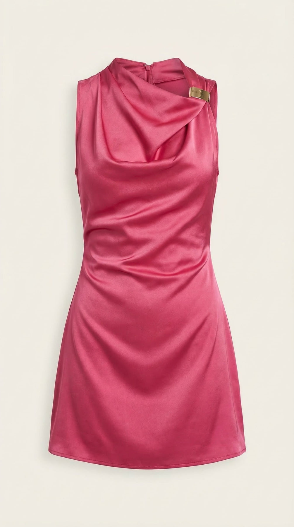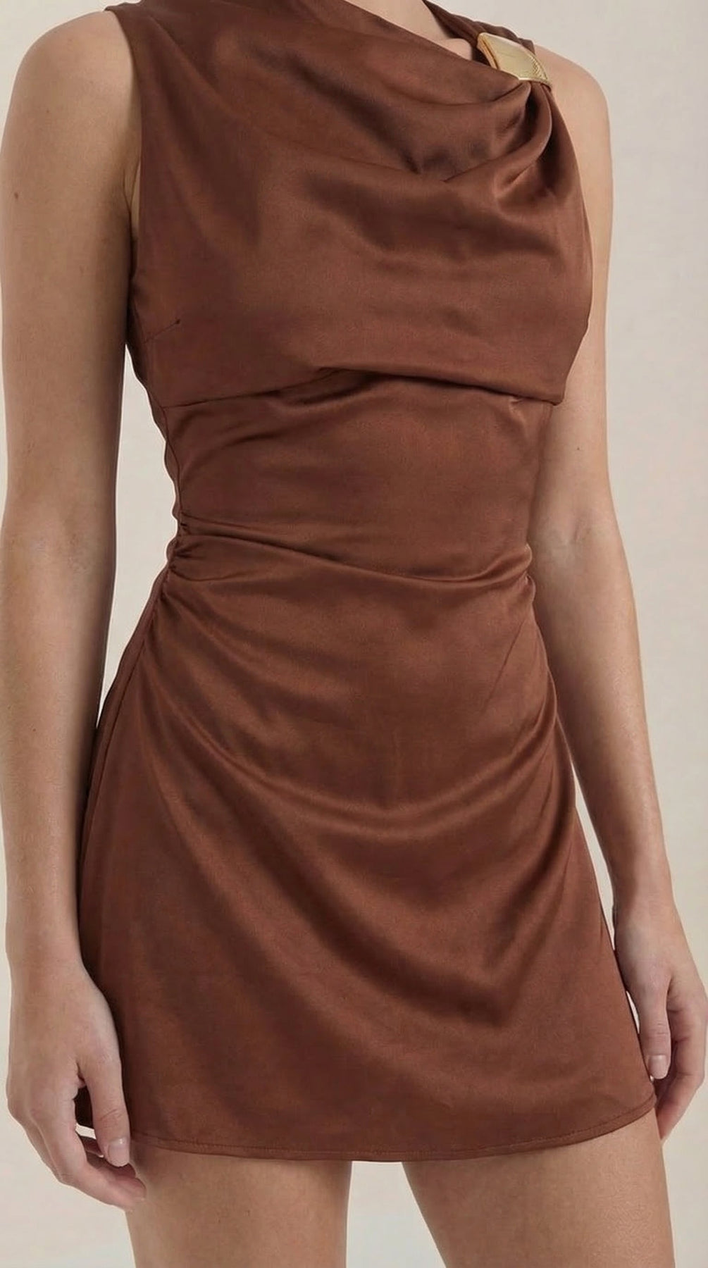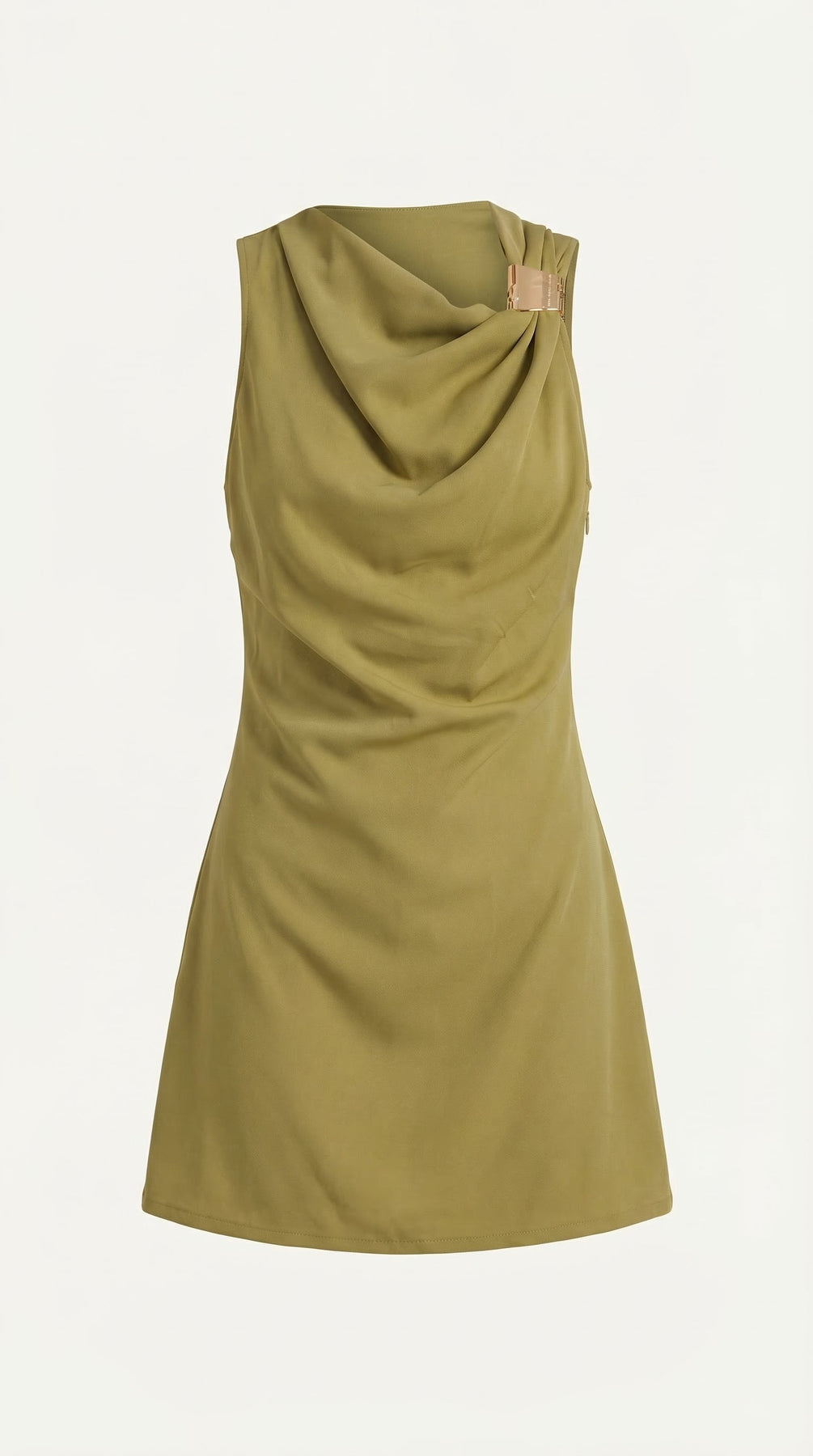 Descubre el vestido mini con cuello de cowl Rosalie, diseñado para deslumbrar en cualquier ocasión. Con un escote en cascada elegante, este vestido realza tu feminidad y favorece tu figura. Los acentos metálicos dorados añaden un toque contemporáneo y lujoso, ideal para noches románticas o fiestas animadas.