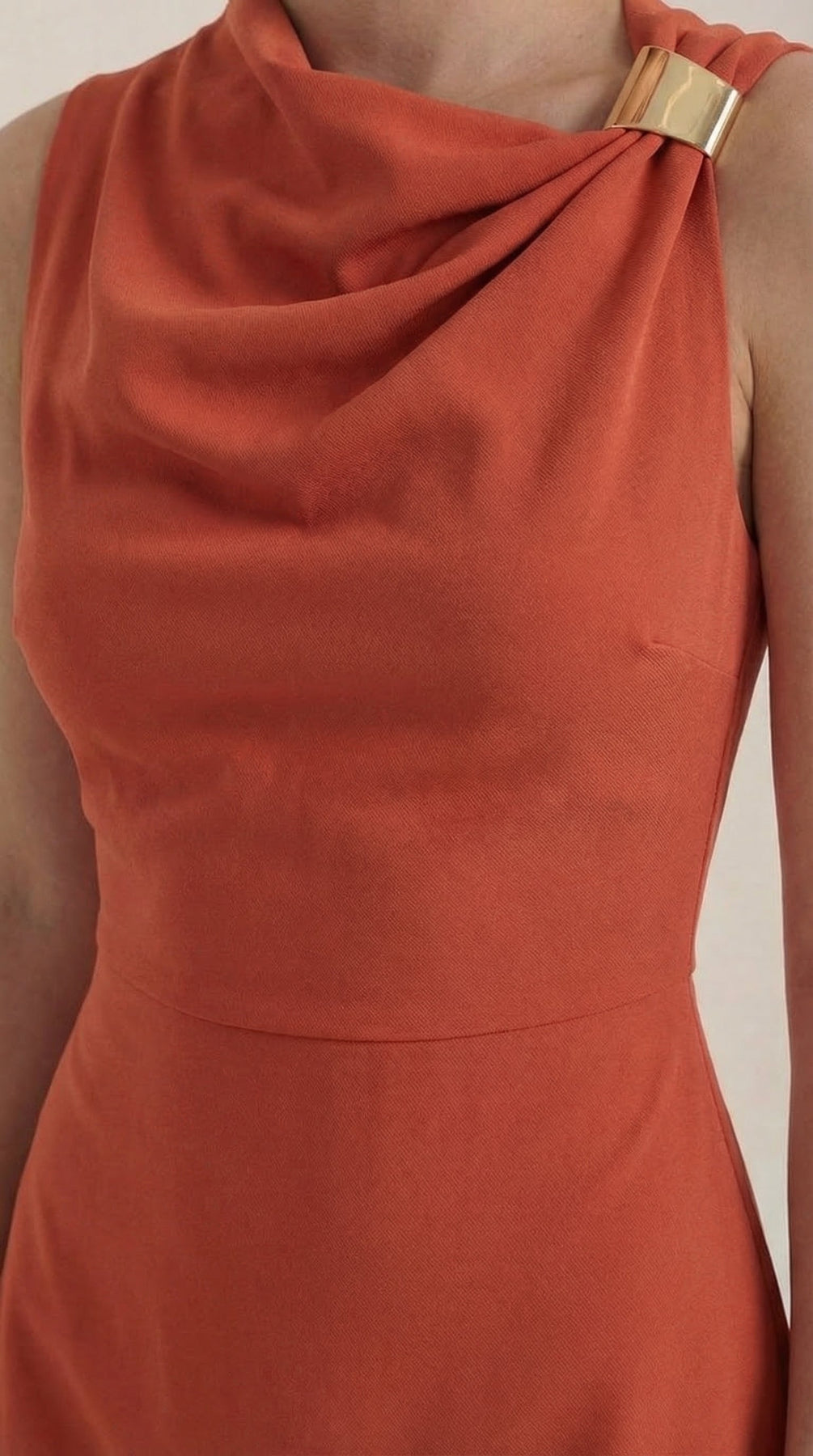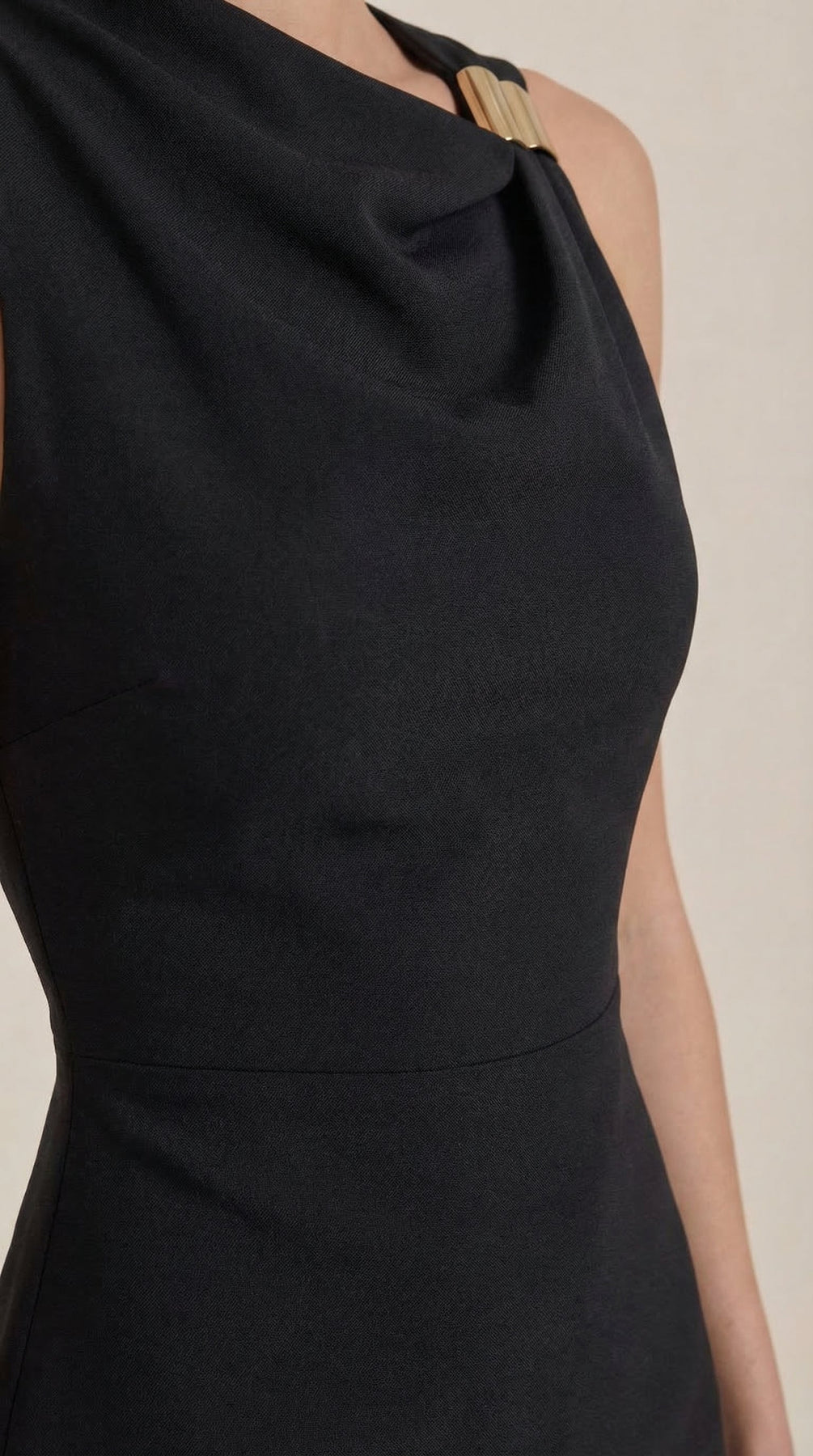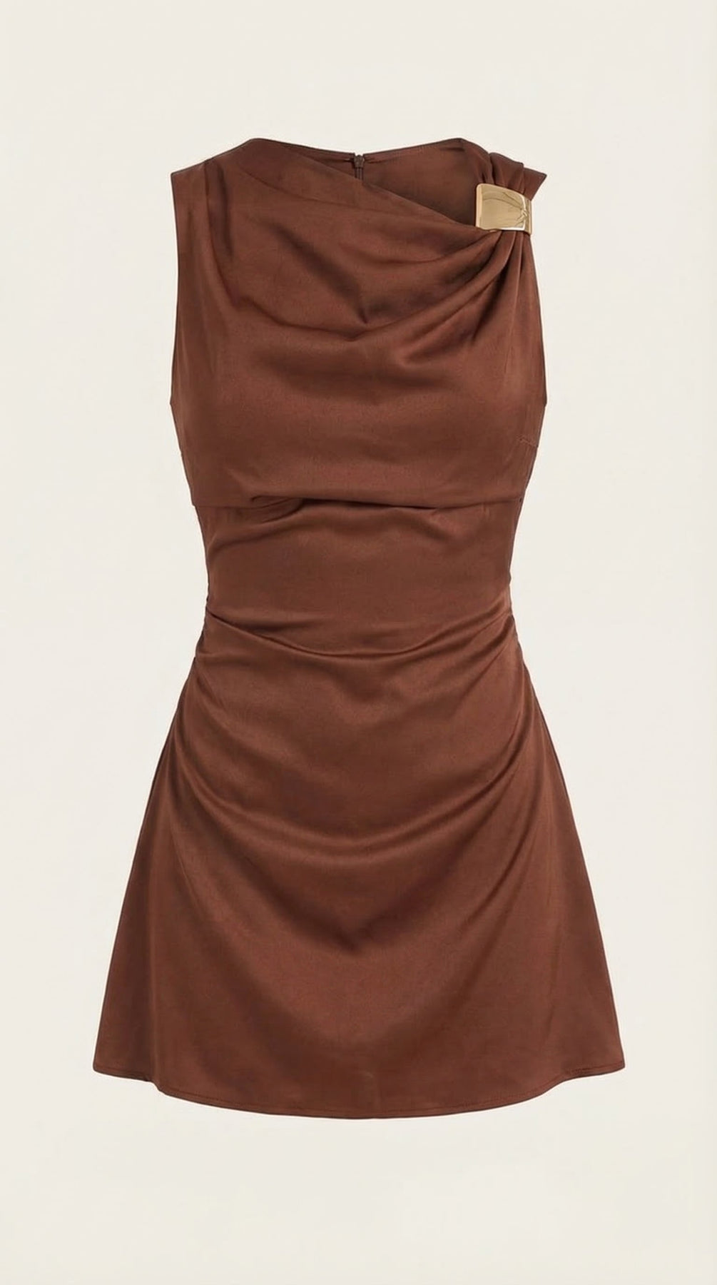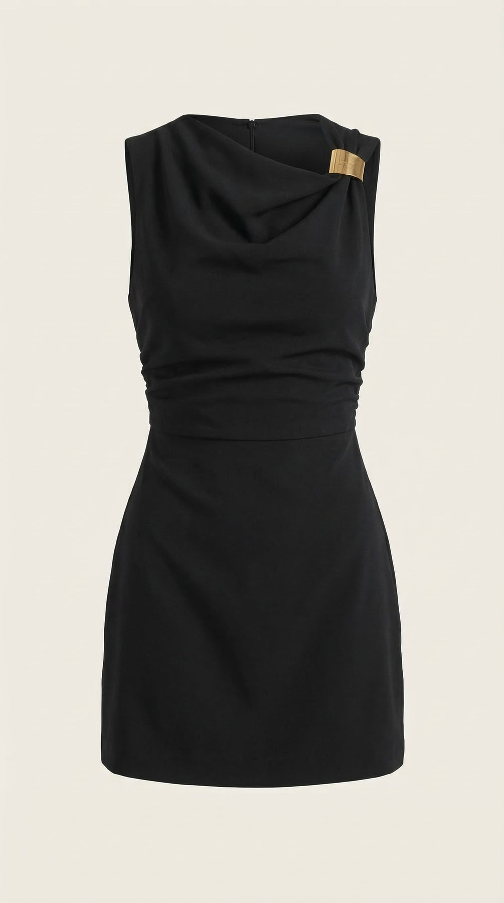 Descubre el vestido mini con cuello de cowl Rosalie, diseñado para deslumbrar en cualquier ocasión. Con un escote en cascada elegante, este vestido realza tu feminidad y favorece tu figura. Los acentos metálicos dorados añaden un toque contemporáneo y lujoso, ideal para noches románticas o fiestas animadas.