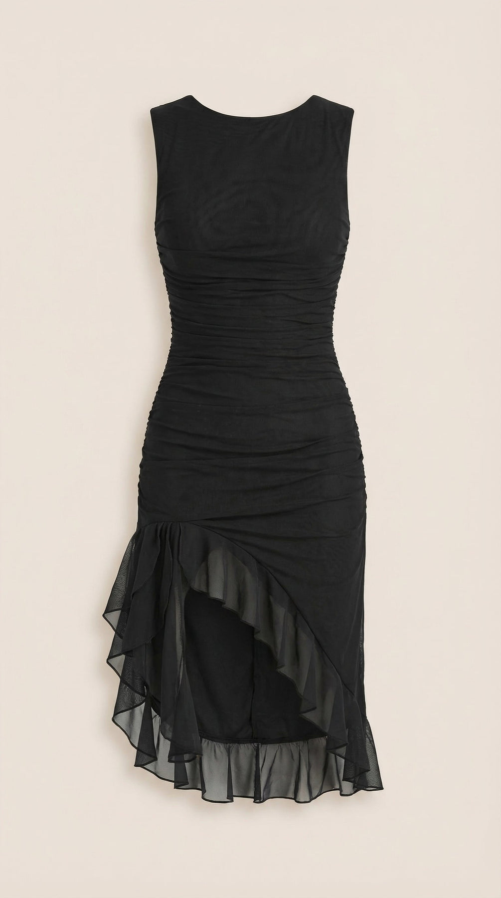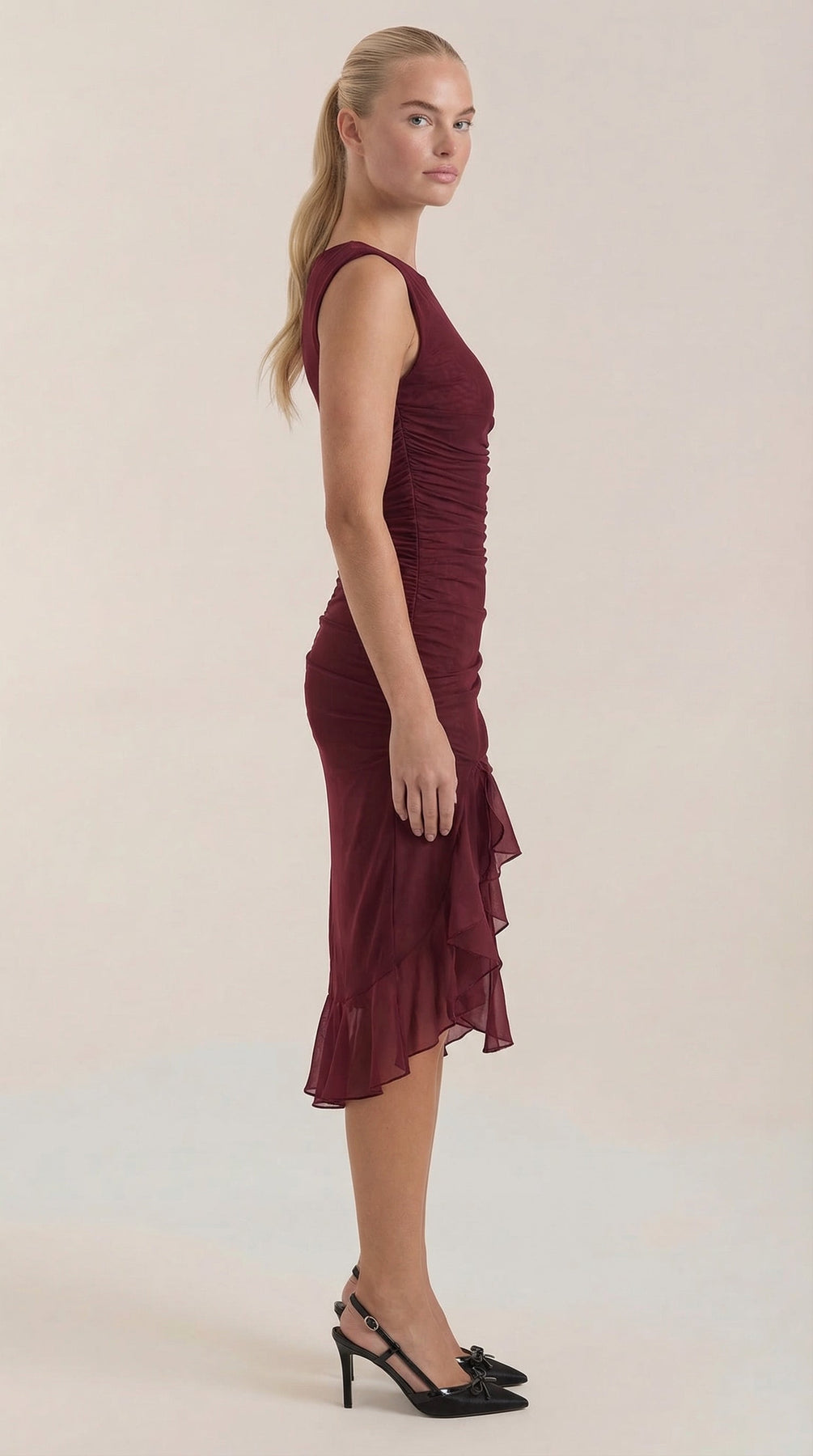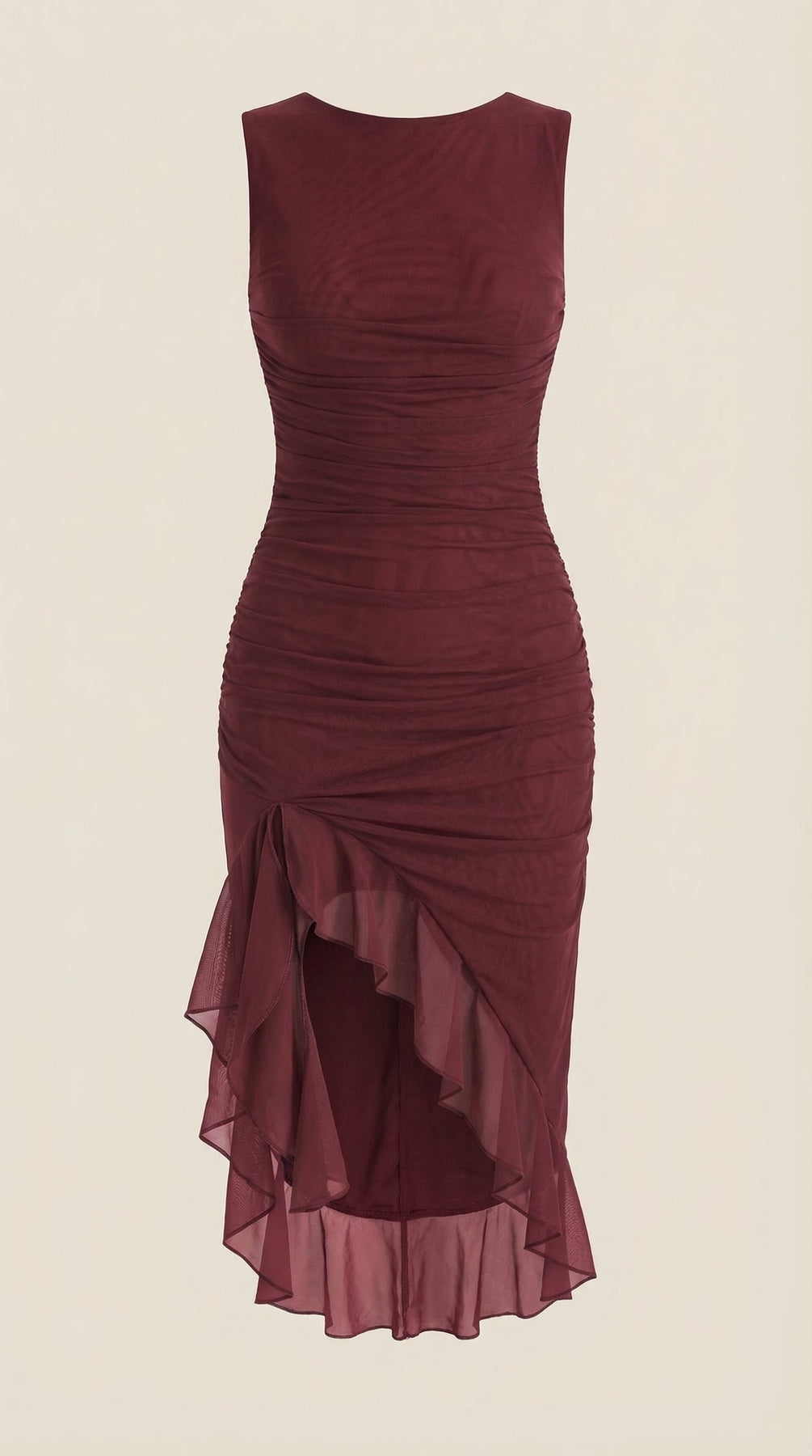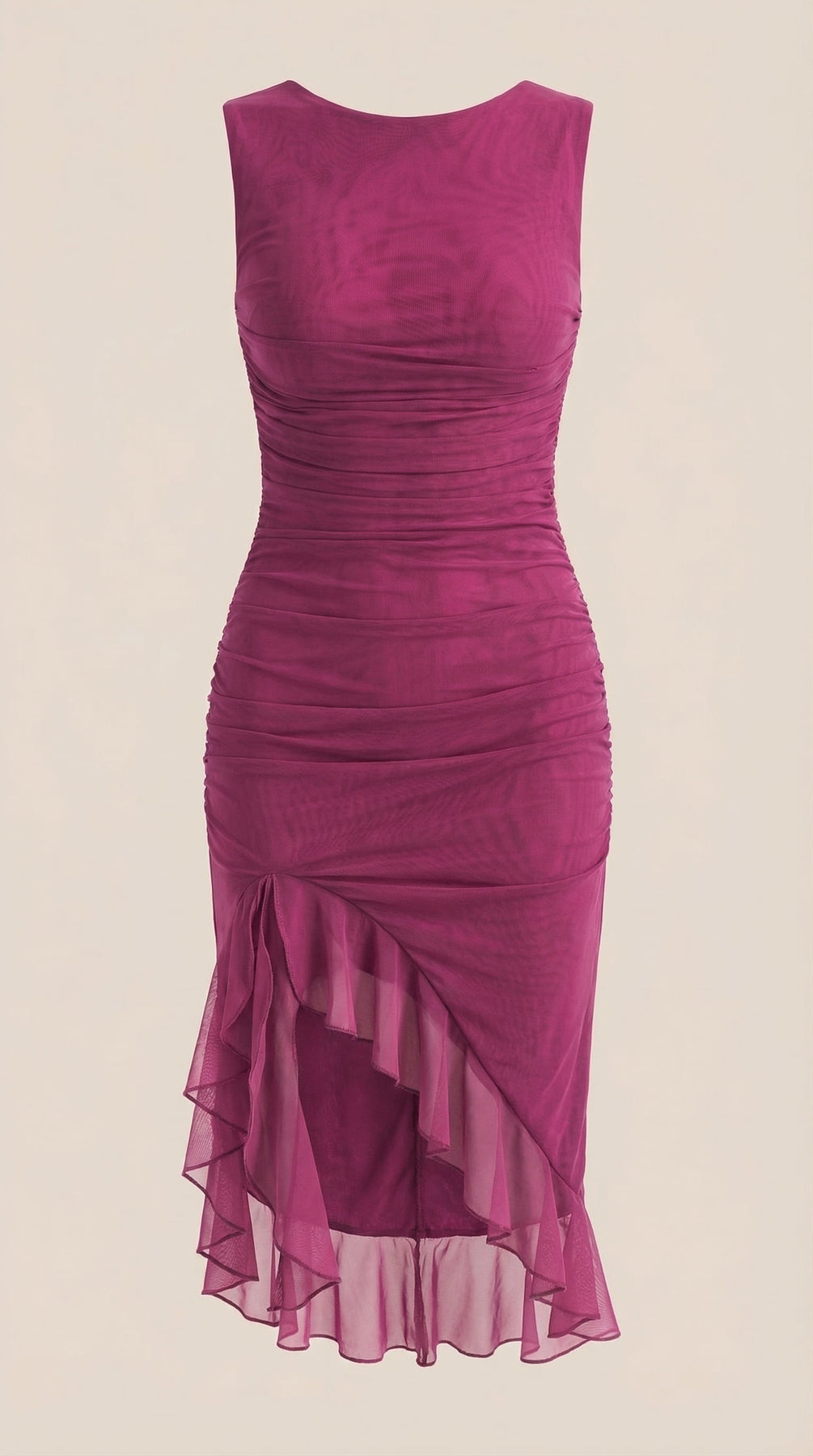 Descubre el Vestido Midi Ramona con Volantes, una pieza imprescindible para tu guardarropa. Este vestido midi ajustado y fruncido cuenta con suaves capas de malla y un encantador dobladillo con volantes.