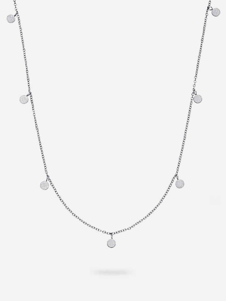 La cadena presenta pequeños colgantes redondos con un acabado clásico brillante en un lado y un acabado cepillado moderno en el otro, ideal para looks de layering. Además, puedes combinarla con la pulsera "Moments" para un estilo completo.