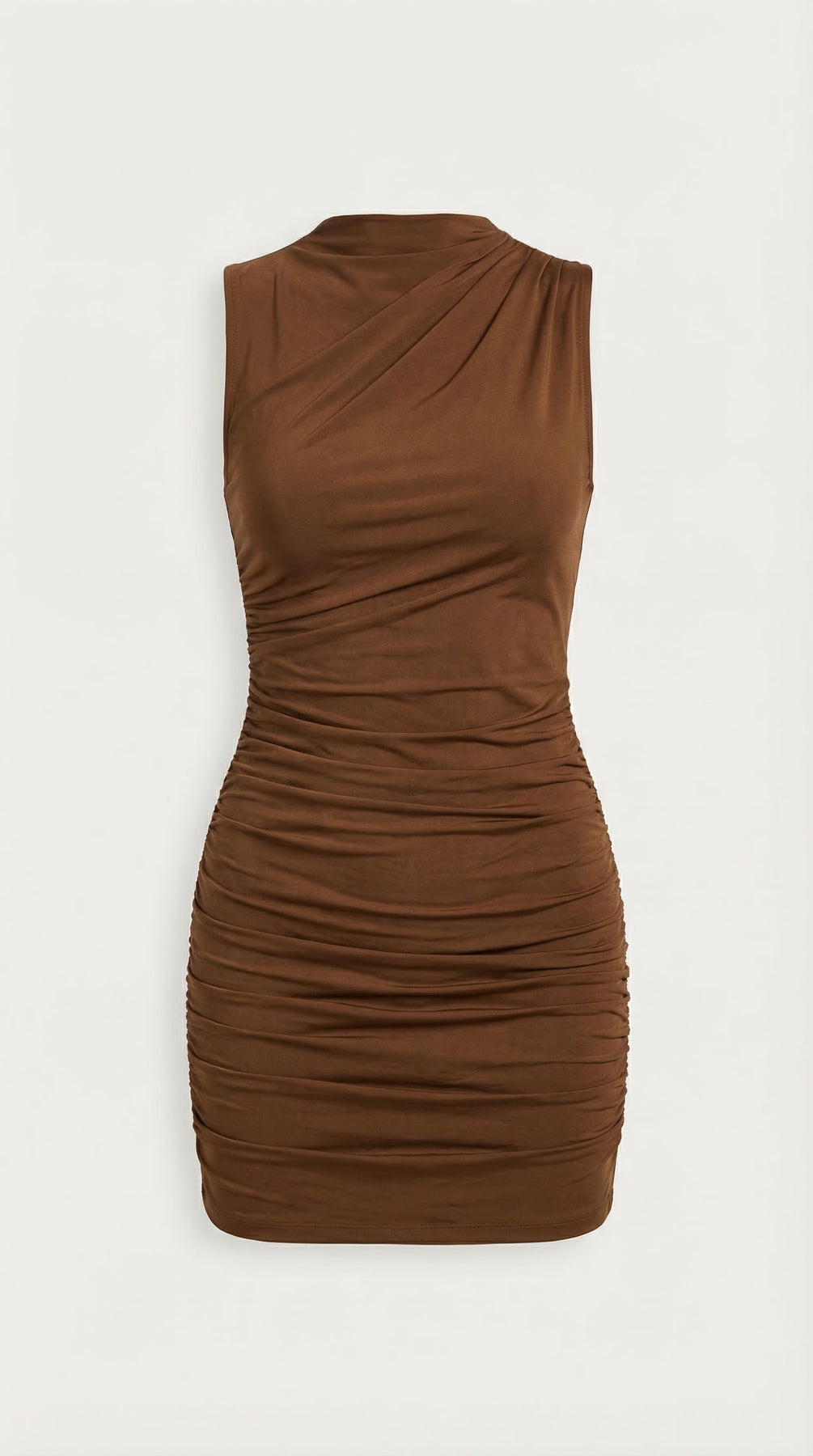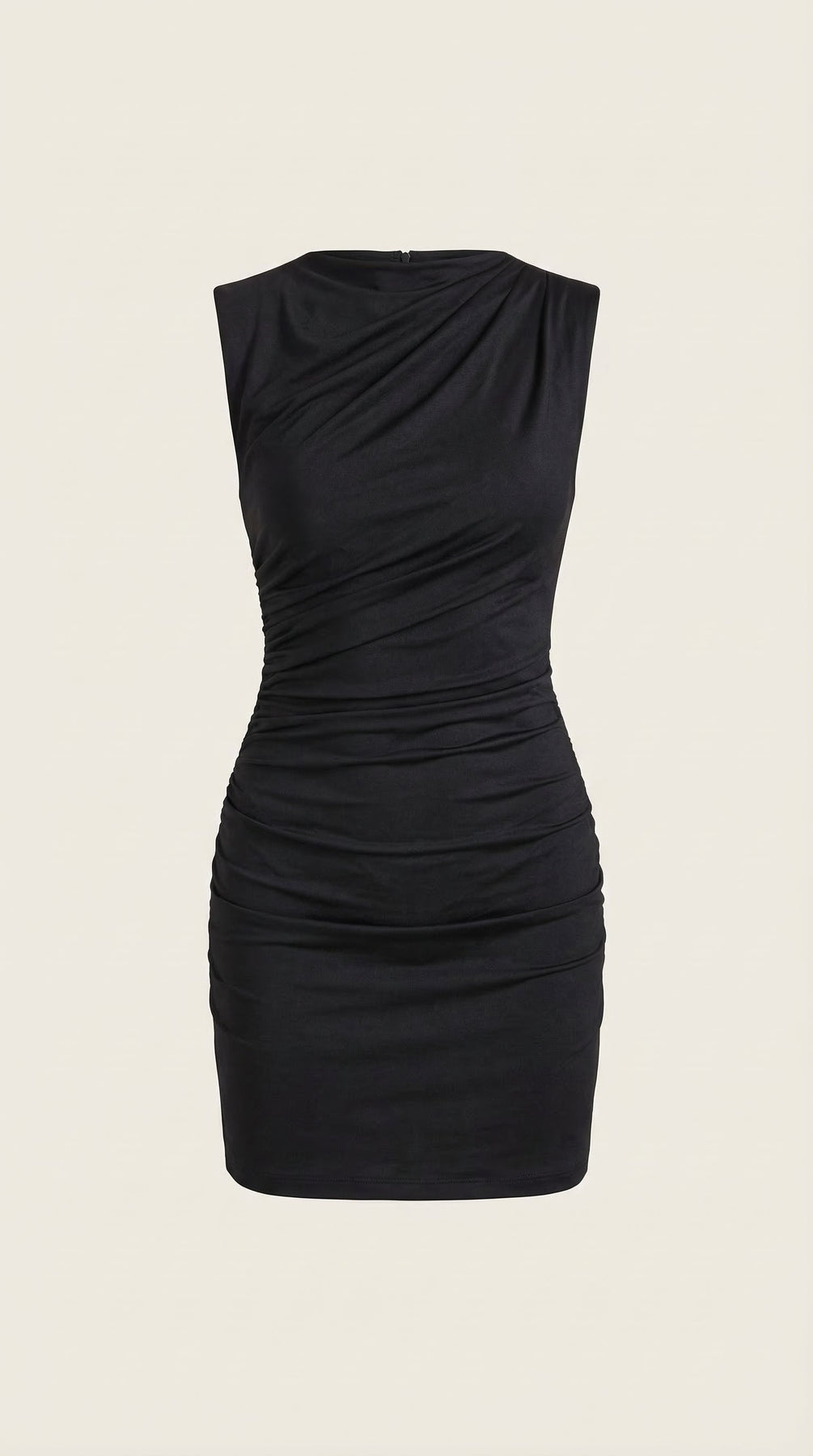 El Vestido Mini Carmela Con Fruncidos es la opción perfecta para resaltar tus curvas de manera impecable. Su fruncido artístico y elegante escote drapeado elevan tu look sin esfuerzo, convirtiéndolo en una prenda irresistible para cualquier ocasión.