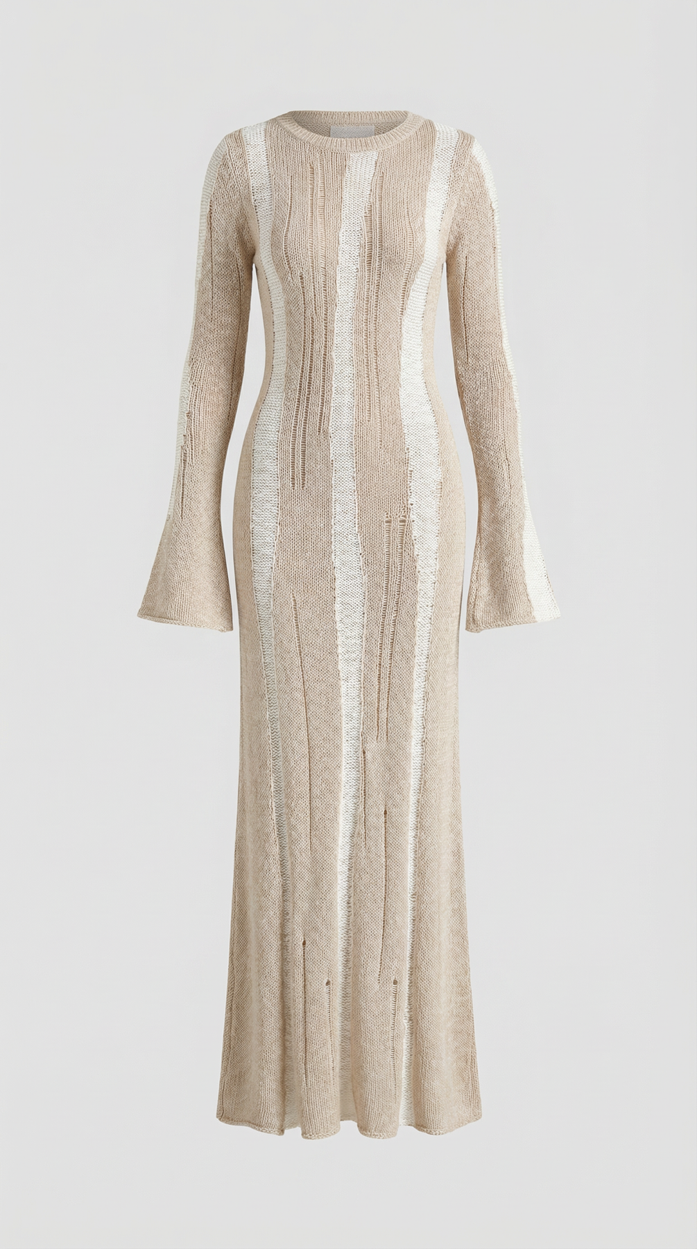 Descubre el "Vestido Maxi Ajustado Tamsin", una obra maestra moderna que redefine el lujo sutil. Confeccionado en suave punto con rayas brillantes, este vestido hasta el suelo ofrece un efecto etéreo y alargador.